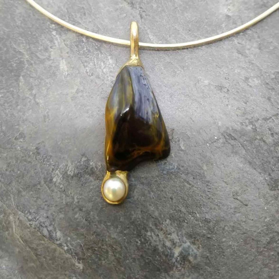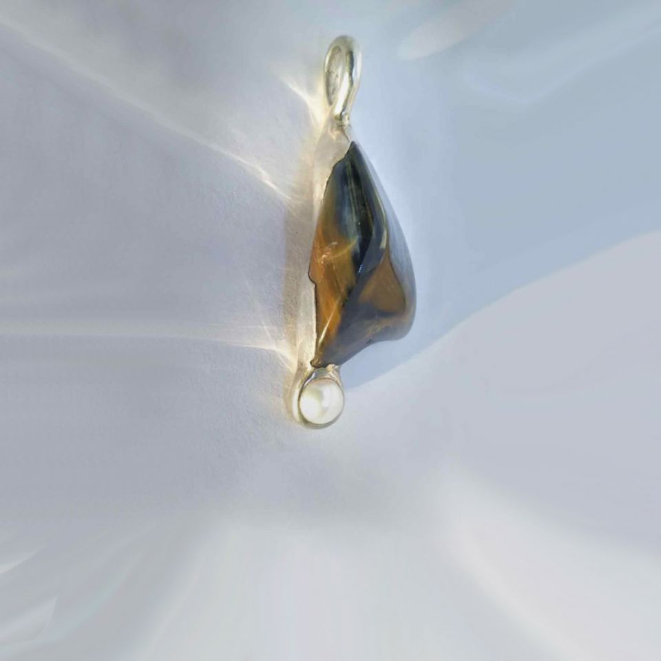Metall: Silber, Steine: Sardonyx, Süsswasserperle