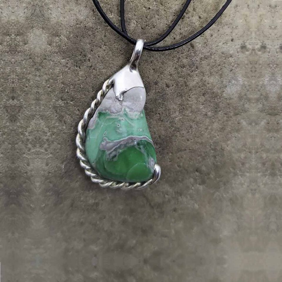 Ein farbenfroher Variscit in einer Silberfassung.Ein wunderschöner Alltagsbegleiter.Das Schmuckstück wird in einer hochwertigen Geschenkbox versendet.
