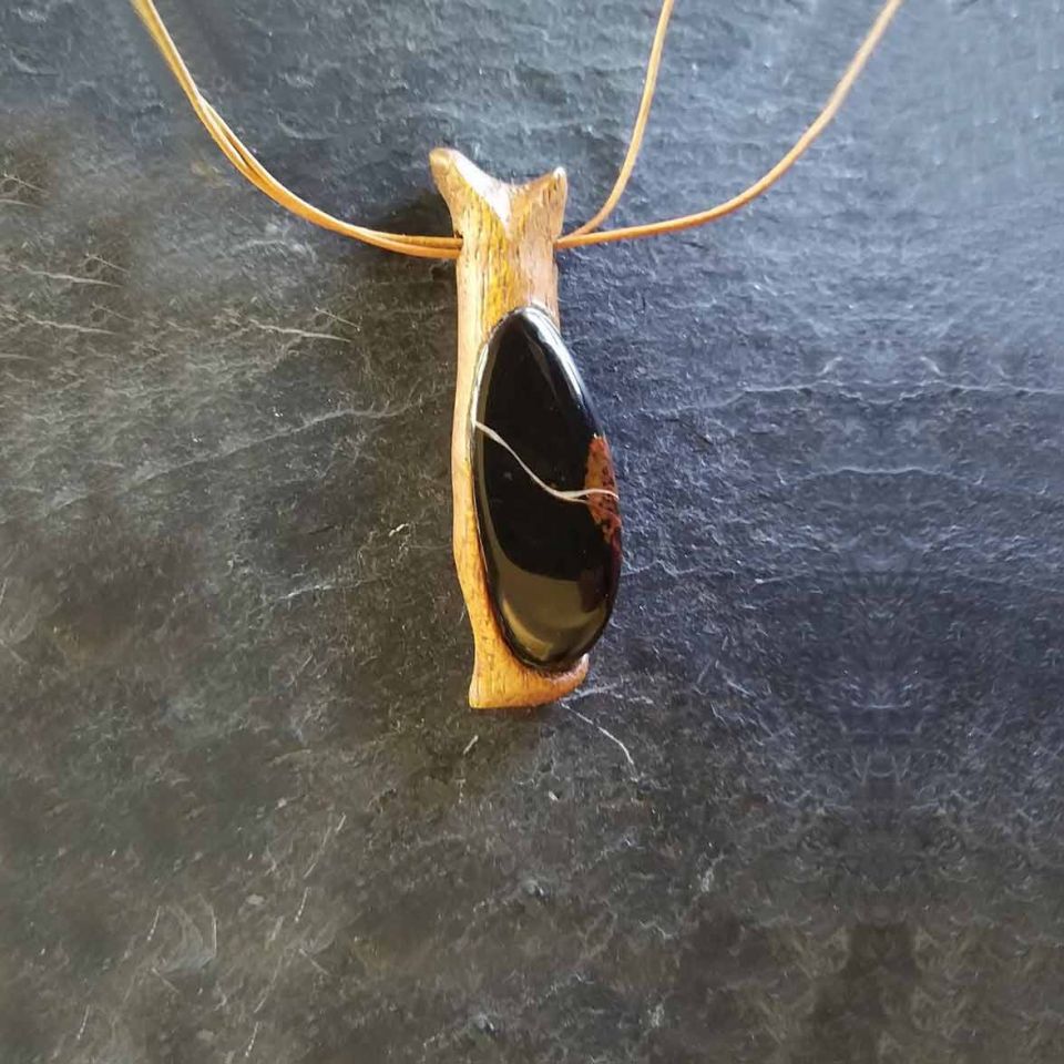 Dieses schöne , harmonisches Duett ist ein Zusammenspiel von Mahagoniholz und einem Sardonyx. Das Holz ist mit kunstharzlack lasiert .Dieses Schmuckstück wird in einer hochwertigen Geschenkbox versendet . Durch das Holz ,sollte der Anhänger nicht mit Wasser in Berührung kommen
